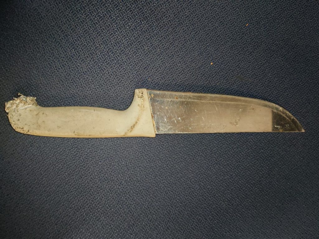 La versión que la mujer dio a los oficiales fue que él continuó golpeándola con los pies en la cabeza y después tomó el arma blanca y se abalanzó sobre ella con el objetivo de lesionarla.