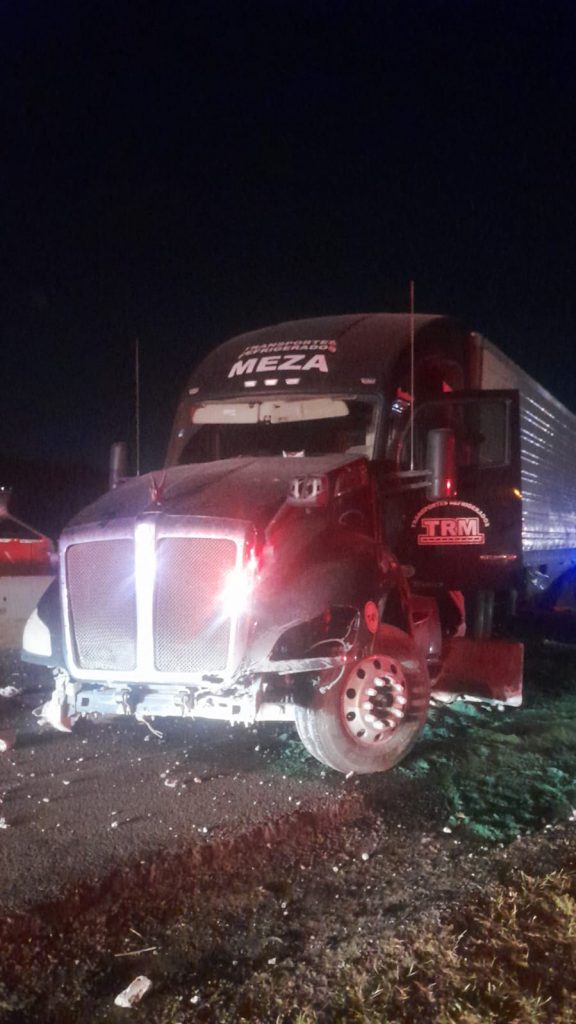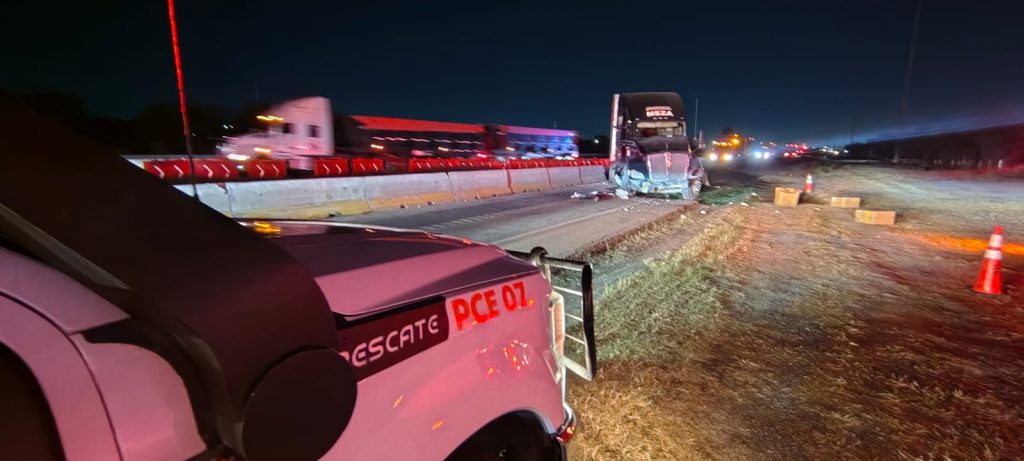 Al arribar al lugar, el personal confirmó que no se trató de una volcadura, sino de un fuerte choque de un tráiler tipo quinta rueda contra el muro de contención central de la vialidad.