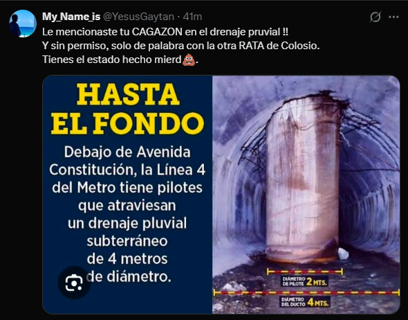 Le mencionaste tu CAGAZON en el drenaje pruvial !! Y sin permiso, solo de palabra con la otra RATA de Colosio. Tienes el estado hecho mierda
