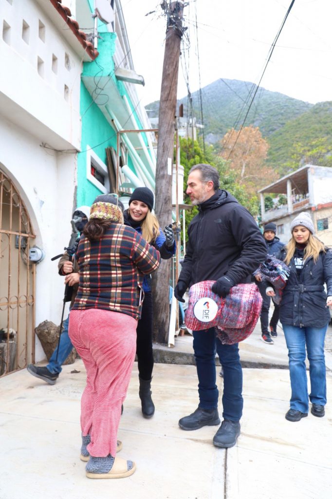 En los días del frente frío número 24 que trajo temperaturas gélidas, el alcalde Adrián de la Garza, su esposa y presidenta del DIF, Gaby Oyervides, en compañía de funcionarios de la Administración y legisladores locales, se desplazaron a zonas altas y de difícil acceso para repartir cobertores y paquetes alimentarios.