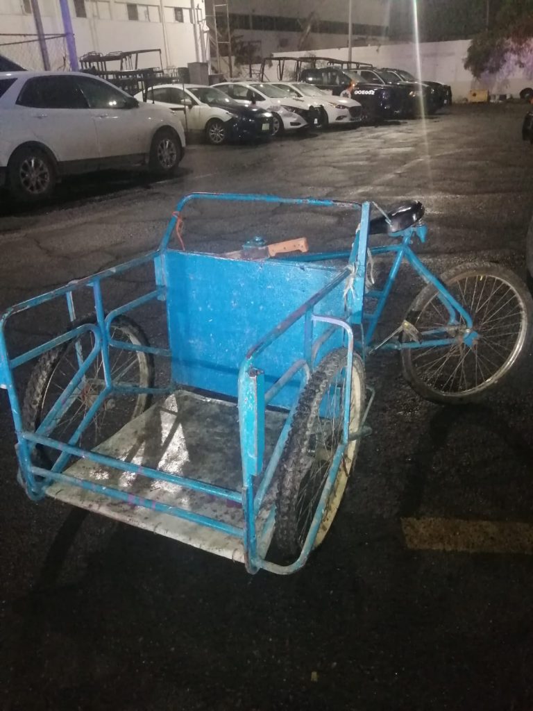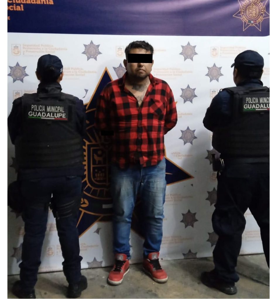 Policías de Guadalupe capturaron a un hombre que transportaba un chaleco antibalas y droga en un triciclo.