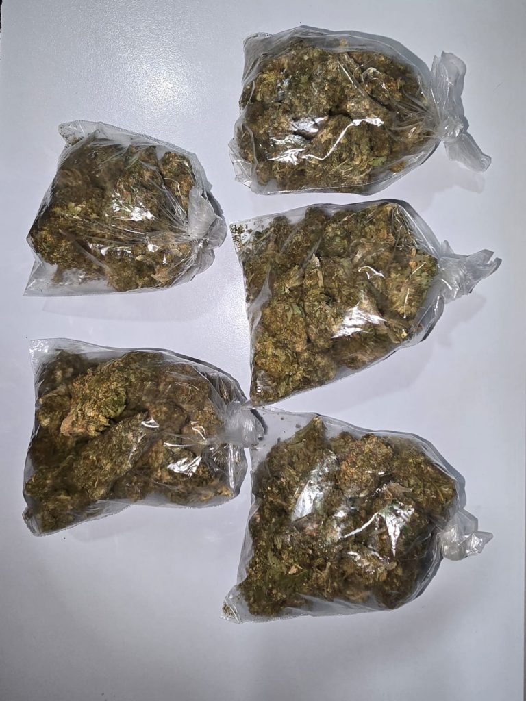 Además, llevaba ocultos en su ropa cinco envoltorios que contenían hierba verde similar a la marihuana.