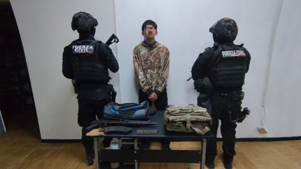 Elementos de Fuerza Civil que realizaban trabajos de detección y disuasión delictiva, detuvieron a un joven que presuntamente poseía un un arma y equipo táctico; esto en el municipio de Aramberri.