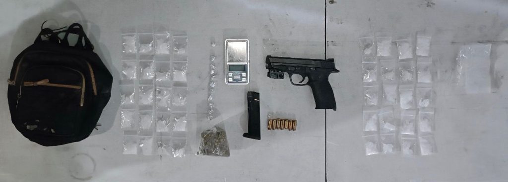 Los individuos fueron sorprendidos cuando circulaban por las calles Julio A. Roca y Sofía, a bordo de una motocicleta Itálika sin placas de circulación. En el momento de la revisión preventiva, se encontró entre sus pertenencias un arma corta abastecida con siete balas, 40 dosis de una sustancia sólida parecida al cristal, 11 con cocaína en piedra y una bolsa con hierba verde y seca con las características de la marihuana.