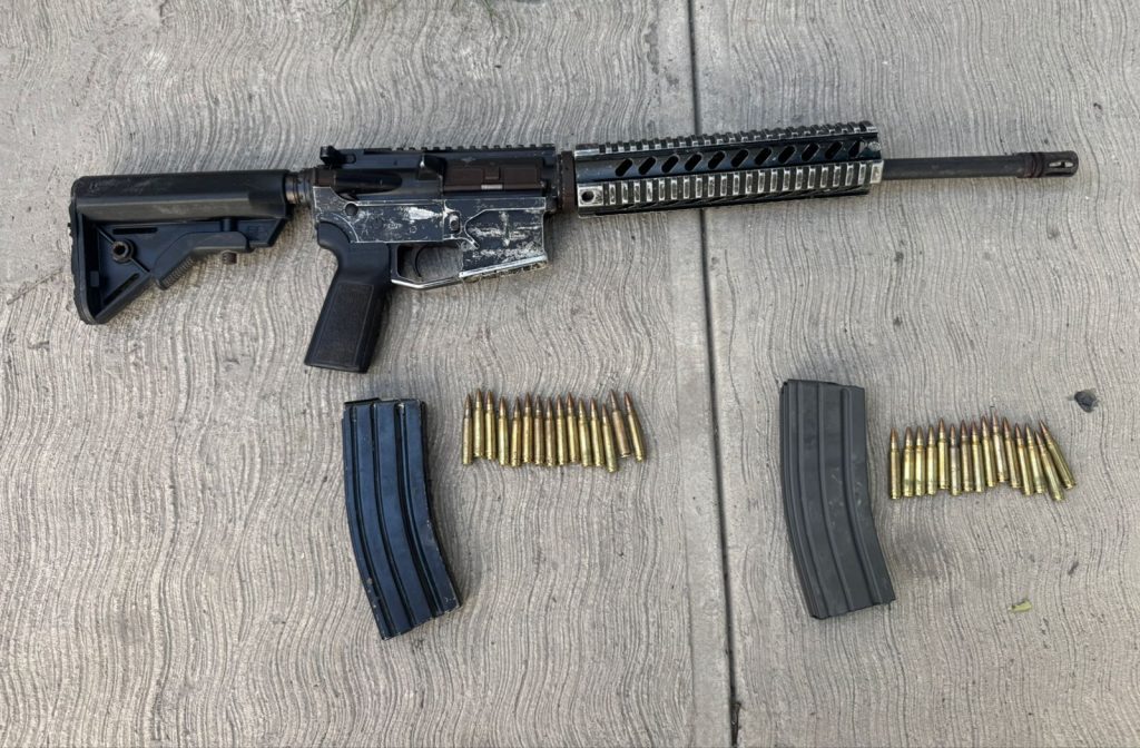 El masculino se identificó como Alejandro “N”, de 25 años de edad; y se le pidió autorización para realizar una revisión precautoria a sus pertenencias, en las que encontraron: un arma larga, dos cargadores abastecidos con un total de 30 municiones y un chaleco balístico.