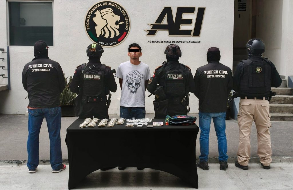 Gracias a los trabajos de detección y disuasión delictiva, elementos de Fuerza Civil y la Agencia Estatal de Investigaciones, realizaron la detención de un joven que presuntamente poseía más de 100 dosis de droga, en Santa Catarina.