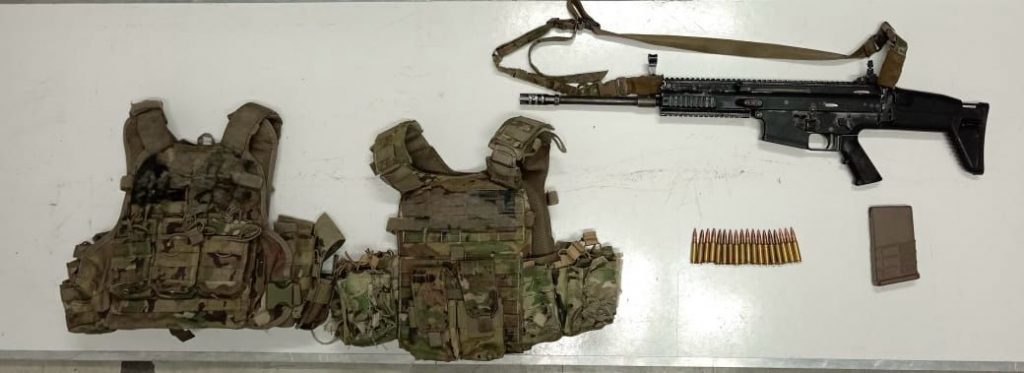 Durante estas labores encontraron un arma de fuego abastecida con 18 balas, dos chalecos balísticos con porta cargadores.