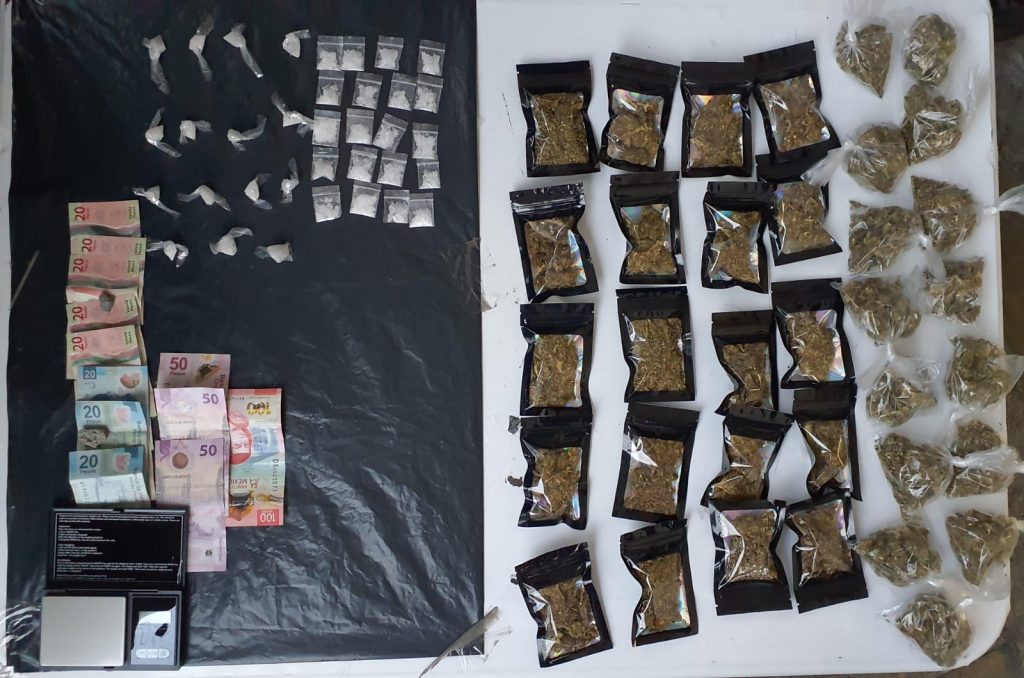 Tras darle alcance le realizaron una inspección precautoria donde le localizaron 24 dosis de una sustancia similar al cristal y 35 dosis de hierba verde similar a la marihuana, además de dinero y una báscula digital.