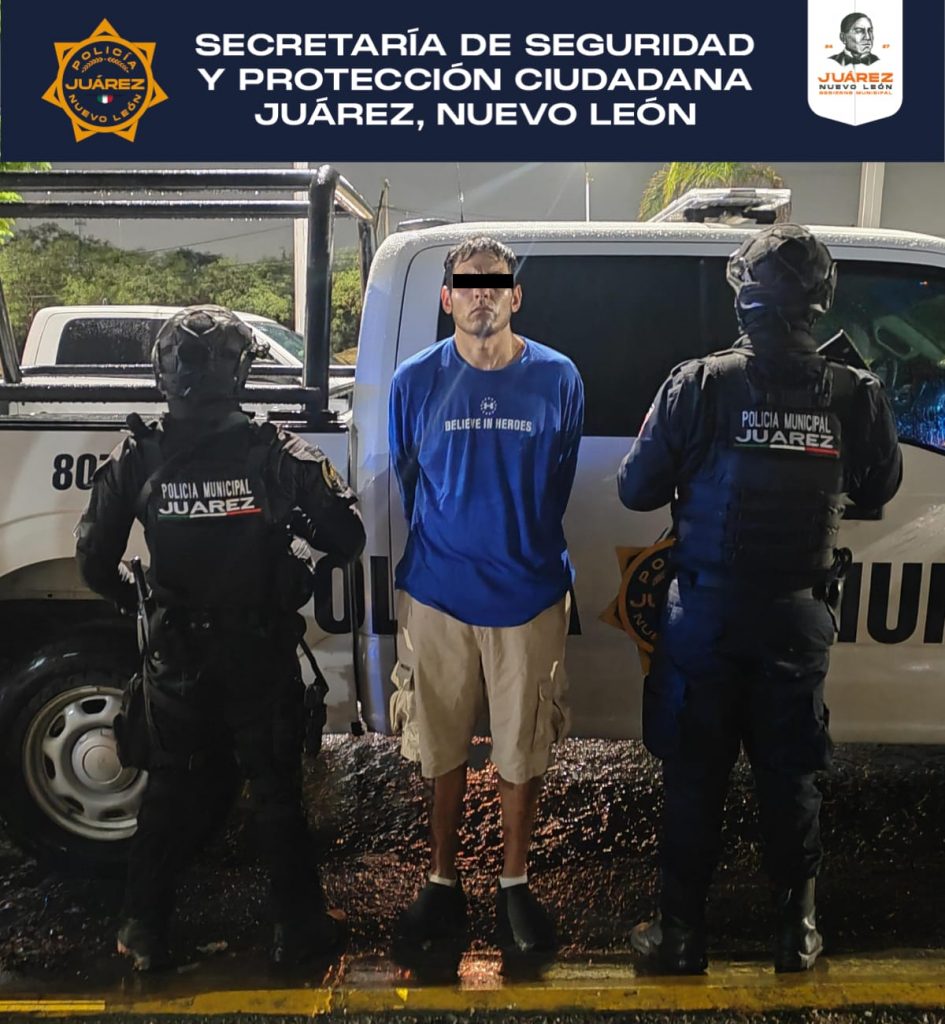 JUÁREZ, N.L.- Durante recorridos de prevención y vigilancia como parte del operativo Calles en Orden, elementos de la Secretaría de Seguridad y Protección Ciudadana de Juárez detuvieron a un hombre que portaba diversas dosis de droga en la colonia Valle Sur.