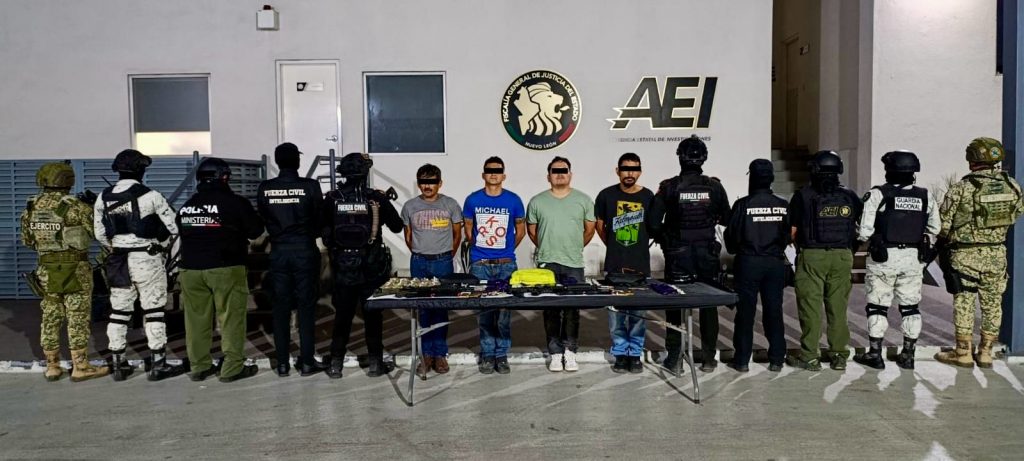 Derivado de trabajos de investigación e inteligencia realizados por la División de Inteligencia de Fuerza Civil en estrecha coordinación con la Defensa, Guardia Nacional y la Agencia Estatal de Investigaciones; efectuaron la captura de cuatro hombres considerados como generadores de violencia y presuntos miembros de un grupo delictivo, en el municipio de Apodaca.