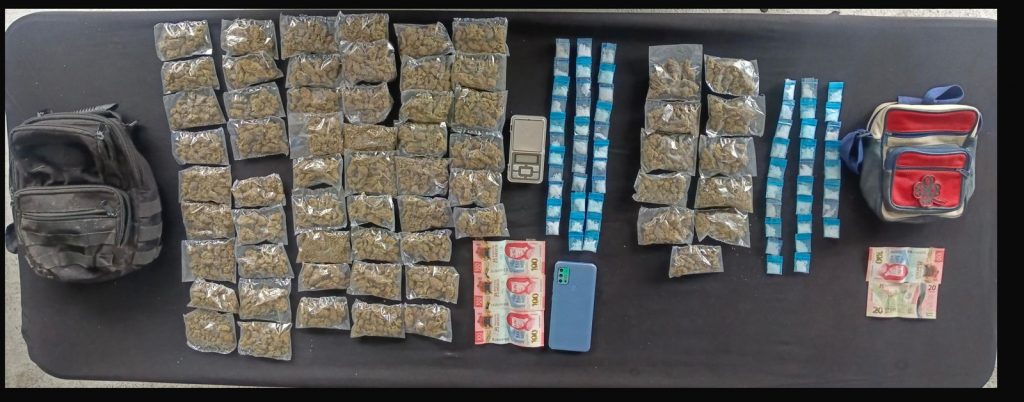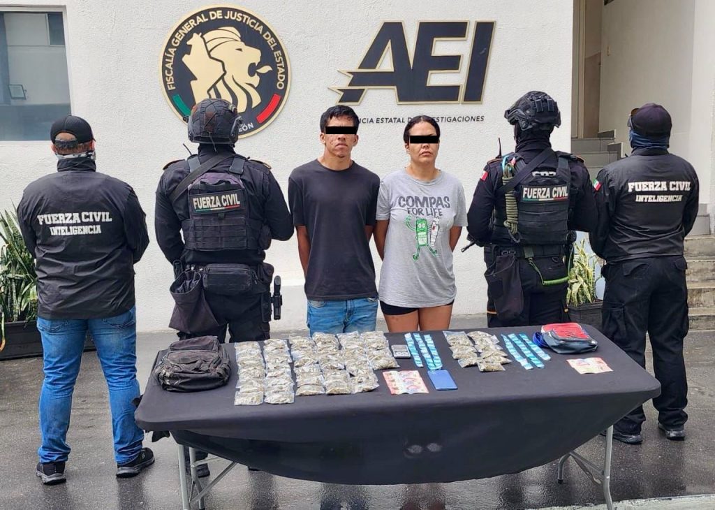 Los sospechosos se identificaron como Óscar “N”, de 25 años de edad y Abril “N”, de 32; y se les solicitó autorización para realizar una revisión precautoria a sus pertenencias, en las que encontraron: 63 envoltorios con hierba verde y seca con las características de la marihuana, 61 con lo que parecía ser cristal, un celular y una báscula digital y dinero en efectivo.