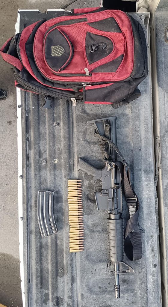El masculino se identificó como Justin “N”, de 18 años de edad y se le pidió autorización para realizar una revisión precautoria a sus pertenencias en las que encontraron un arma larga abastecida con 30 balas.