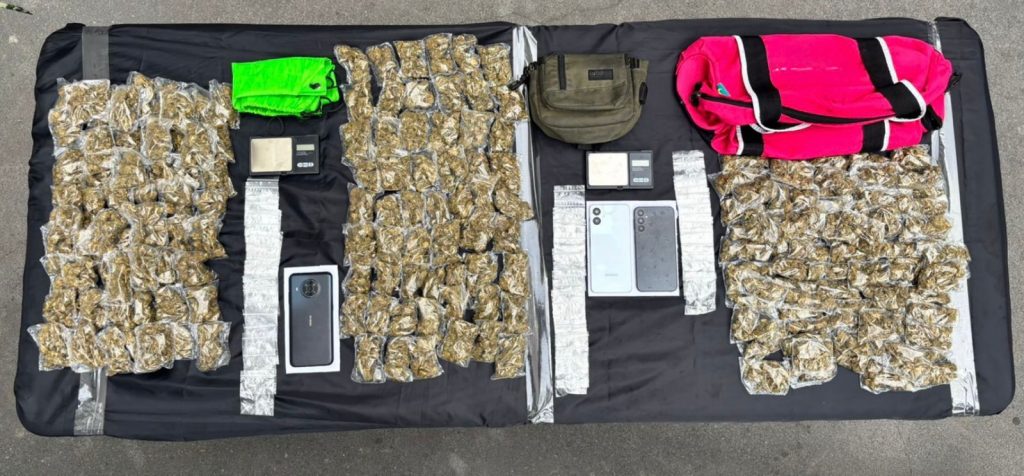 En el lugar se realizó el decomiso de: 206 envoltorios con hierba verde y seca con las características de la marihuana, 83 dosis con una sustancia sólida parecida al cristal, cuatro básculas digitales, dinero en efectivo y cinco celulares.