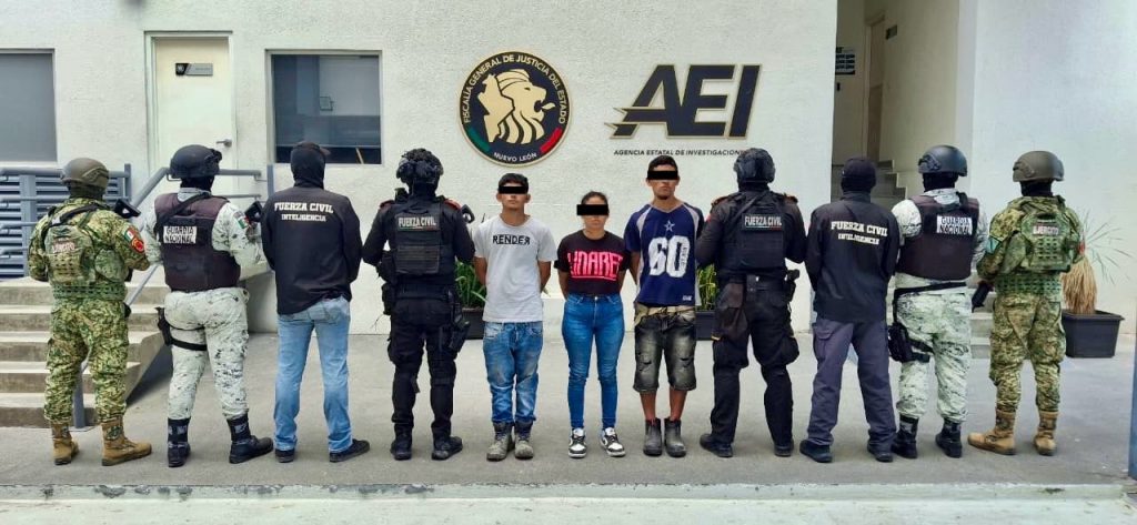 Con trabajos de investigación e inteligencia, el Grupo de Coordinación efectuó la captura de dos hombres y una mujer que eran acompañados por un adolescente; esto en el municipio de Linares.
