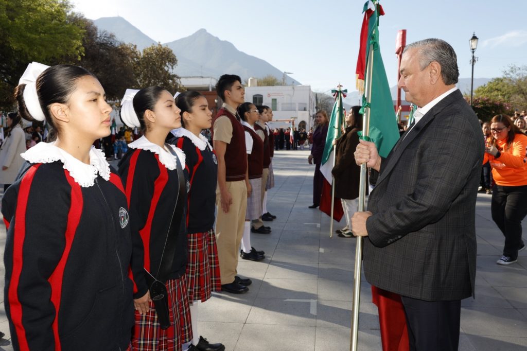 El Alcalde Héctor García convocó al gabinete municipal y al Cabildo para abanderar a las escoltas de cada una de las escuelas de prescolar, primaria y secundaria.