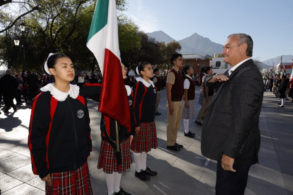 Cientos de alumnos rindieron honores al lábaro patrio, símbolo de la identidad de los mexicanos. Los escolares recibieron con orgullo la bandera mexicana a la que juraron respetar.