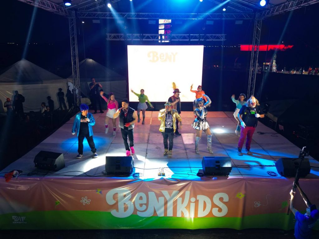 Alrededor de las 7:00 de la noche, las luces del escenario principal se encendieron para recibir nuevamente al alcalde Félix Arratia y a la presidenta del DIF, Mónica Oyervides, quienes dieron la bienvenida a Los Payasónicos y cerrar con broche de oro el primer BenyKids.