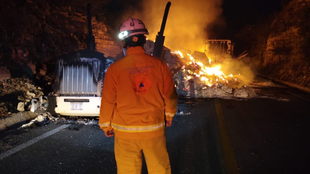El percance, reportado alrededor de las 5:29 horas, involucró un fuerte choque que derivó en el incendio de al menos una de las unidades pesadas involucradas.