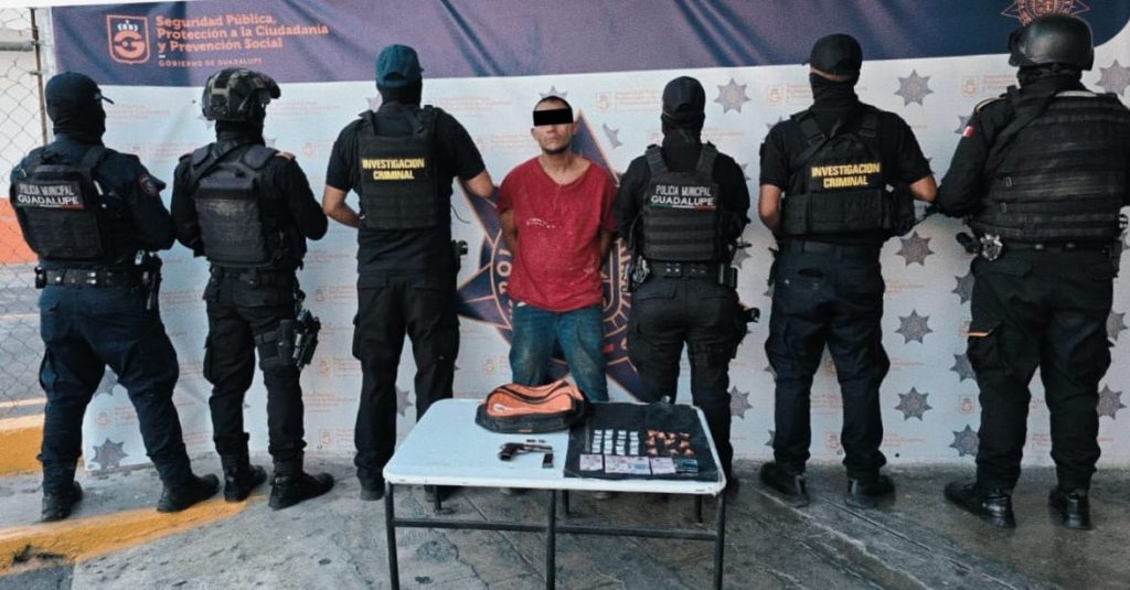 En un operativo táctico, policías de Guadalupe capturaron a un hombre armado que disparó contra los elementos para intentar escapar y se ocultó entre matorrales, donde finalmente fue desarmado y asegurado.