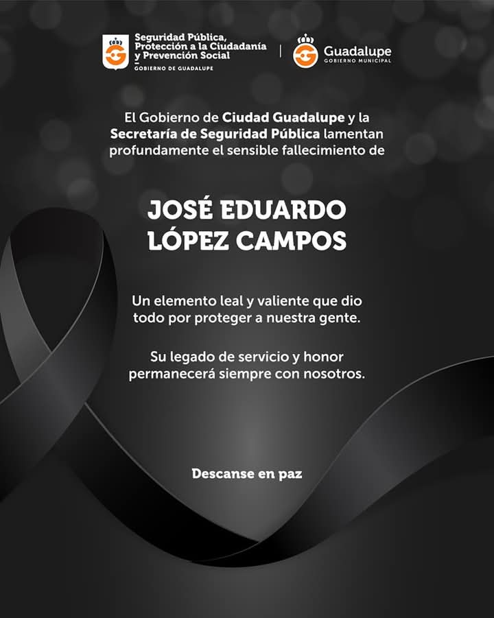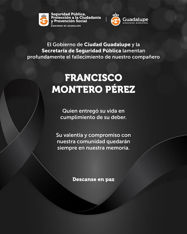El Gobierno de Guadalupe condena enérgicamente el cobarde ataque perpetrado esta mañana contra cuatro de nuestros agentes municipales, en el que dos de ellos perdieron la vida y dos más resultaron heridos.