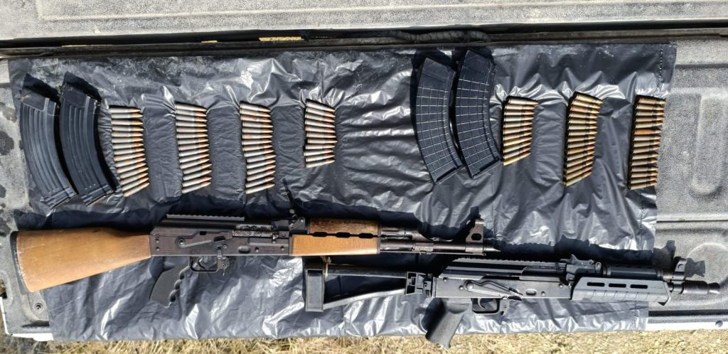 Con acciones tácticas policiales, descendieron de las unidades y pie tierra buscaron a los sospechosos pero no había nadie en el lugar. Durante el rastreo encontraron: dos armas largas, cuatro cargadores abastecidos con 97 balas.