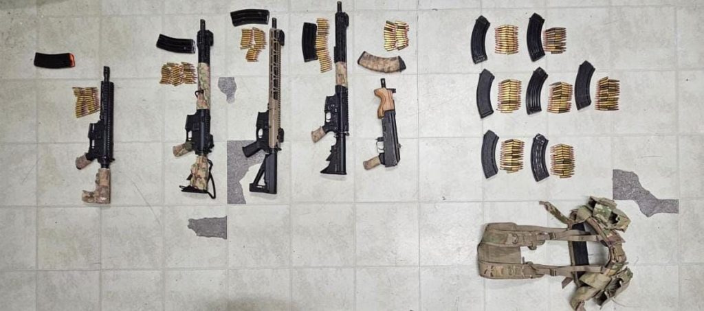 Cinco armas largas abastecidas con 135 balas, una fornitura, siete cargadores con 179 municiones.