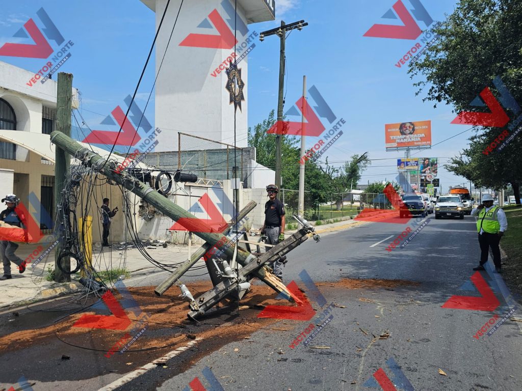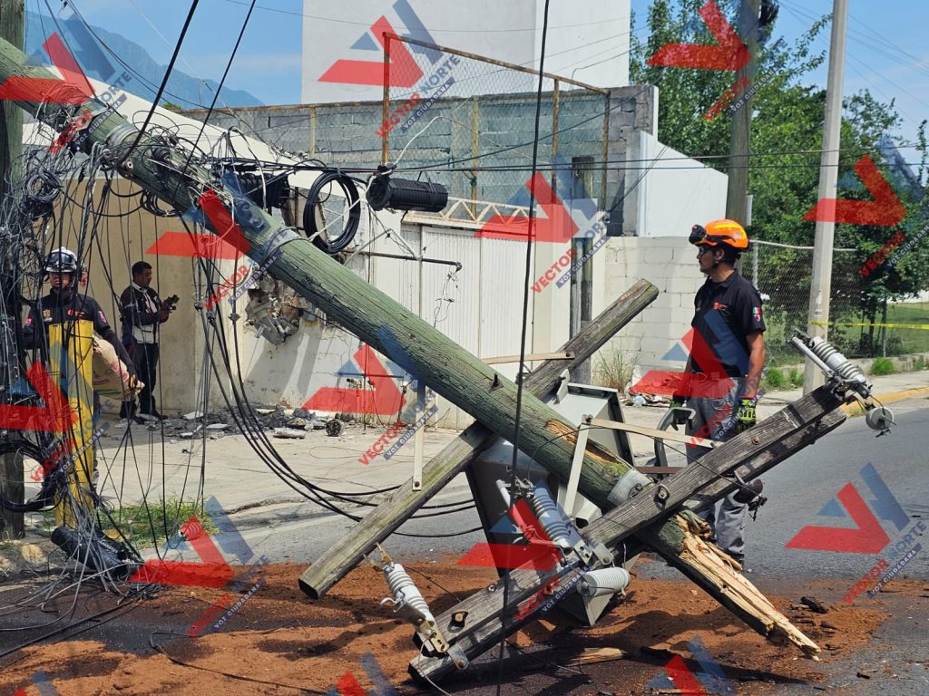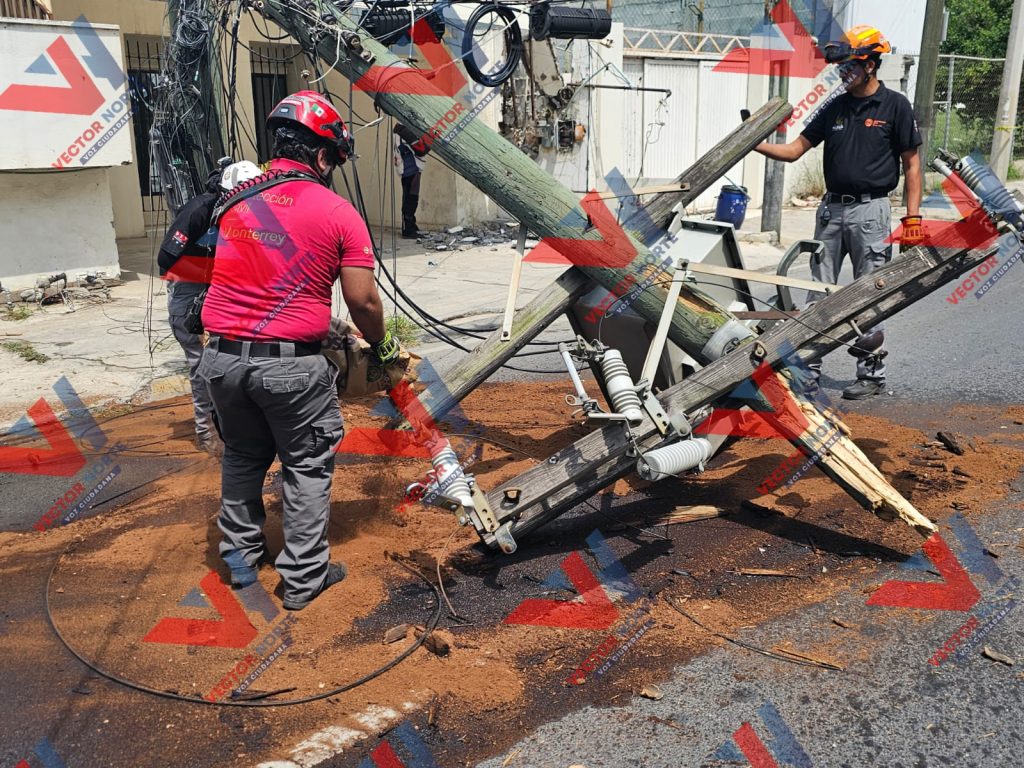 Elementos de Protección Civil de Monterrey y personal de la CFE acudieron al lugar para evaluar los daños, confirmando que el poste se fracturó debido a su mal estado.
