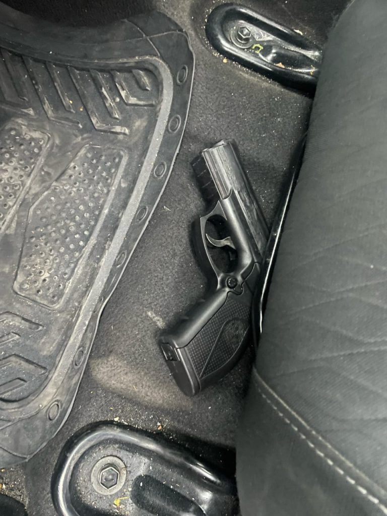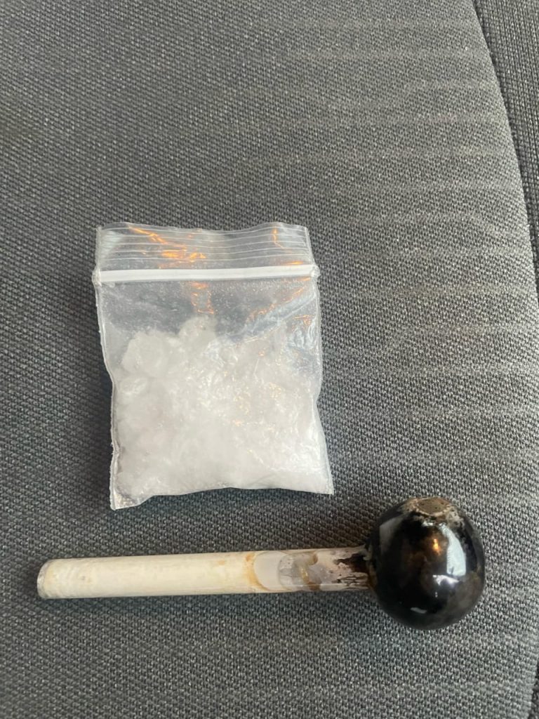 Al momento de la detención al masculino le encontraron un arma corta, una pipa y una bolsa transparente tipo ziploc que contiene sustancia sólida con las características de la droga tipo cristal.
