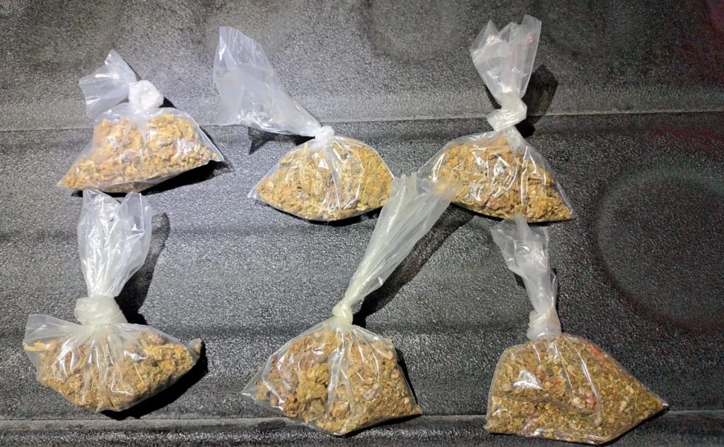 Posteriormente le realizan una revisión encontrándole en la bolsa del pantalón seis bolsitas de plástico que contenían hierba verde con las características a la mariguana, por lo que es detenido.