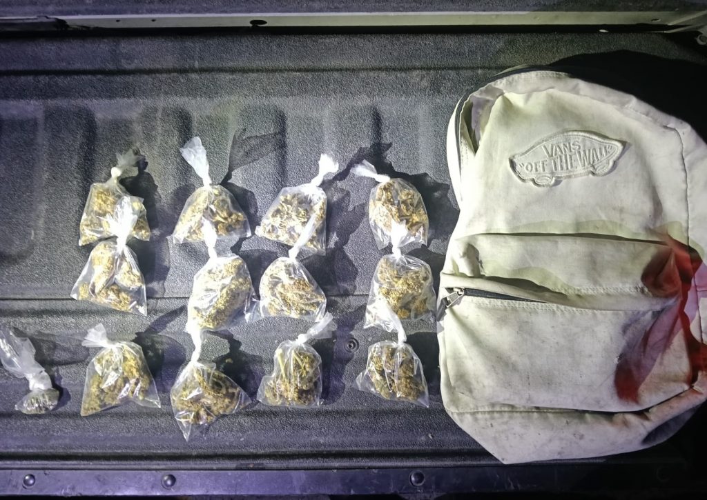 Además, al revisar al presunto le encuentran en una bolsa color blanco, 13 envoltorios de plástico con hierba verde con las características de la mariguana, por lo que es detenido por ambos delitos.