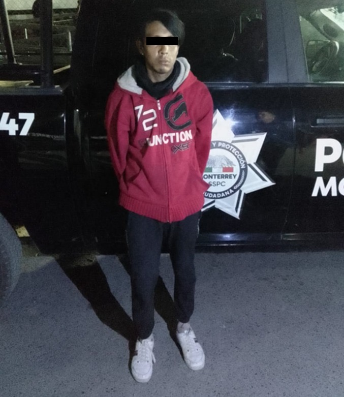 El joven fue trasladado a las instalaciones de la Policía de Monterrey, donde quedó a disposición del Ministerio Público.
