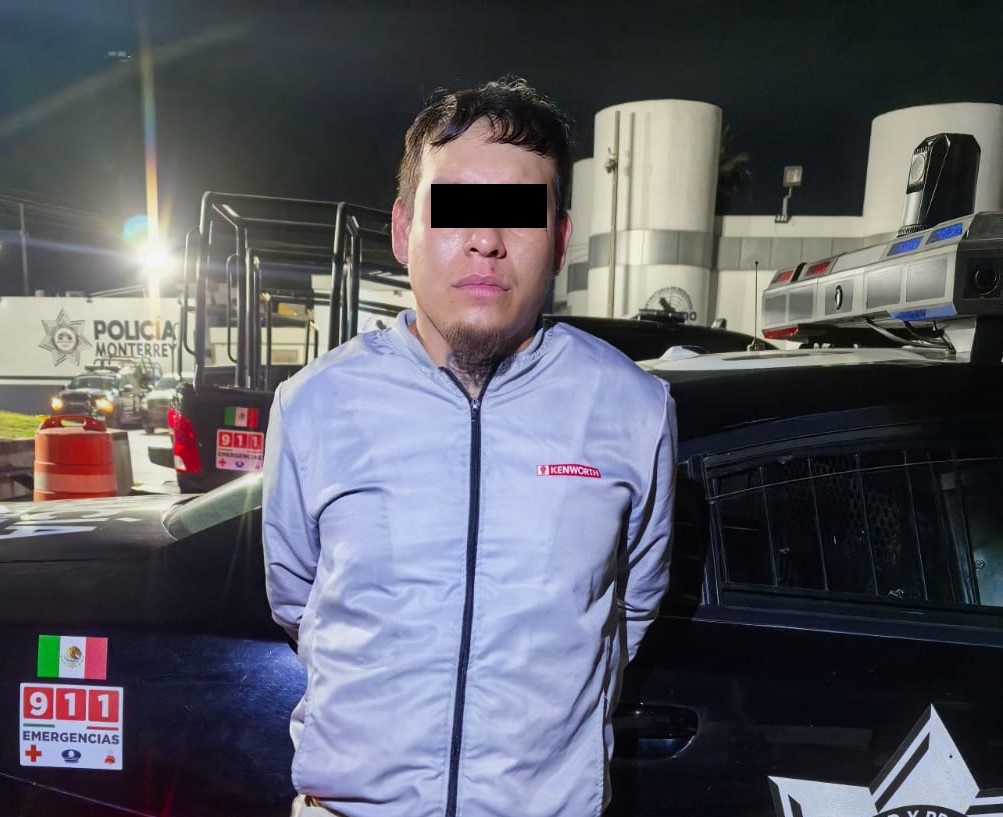 El hombre fue trasladado a las instalaciones de la Policía de Monterrey, donde quedó a disposición del Ministerio Público.