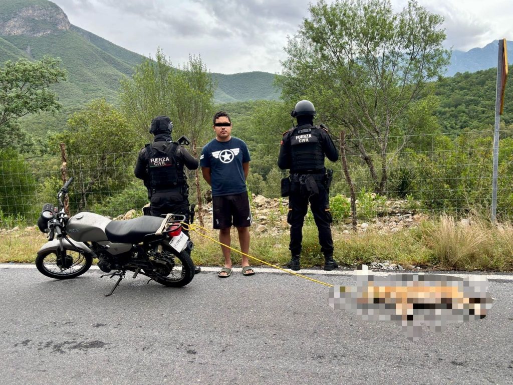 Policías de Fuerza Civil que realizaban trabajos de prevención y disuasión delictiva, en el municipio de Rayones; detuvieron a un varón por presuntamente quitarle la vida a un canino.