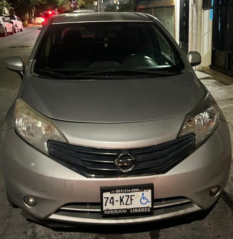 Los elementos de la Policía de Monterrey realizaban labores de prevención en la zona cuando observan un vehículo Nissan Note, en color gris, con placas 74-KZF, con las luces apagadas, por lo que le marcan el alto.