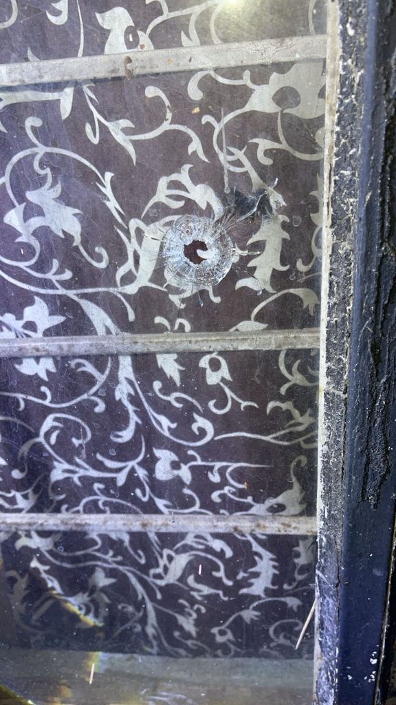 En el ataque al domicilio de la calle Puebla dejó daños de disparos de arma de fuego en una ventana y la fachada.