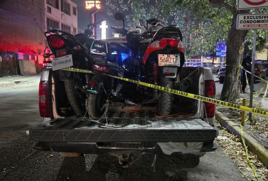Con apoyo del sistema monitoreo del C4, se logró la ubicación de la camioneta Chevrolet Silverado, con placas WF 6158 B, del estado de Tamaulipas, la cual llevaba tres motocicletas en la parte de la caja.