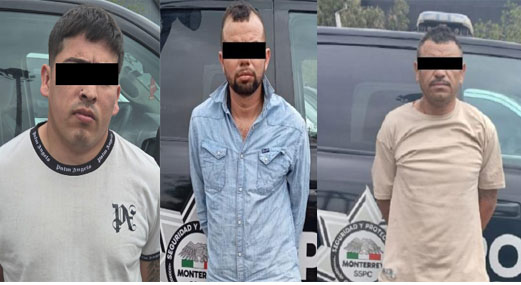 La captura de Juan José J., de 28 años; Miguel Ángel S., de 45 años y Fredy Alexander F., de 38 años de edad, se registró a las 10:55 horas, en Eugenio Garza Sada, entre Capricornio y Lince, en la Colonia Contry, al sur de la ciudad.