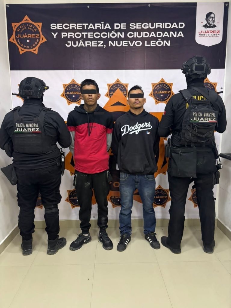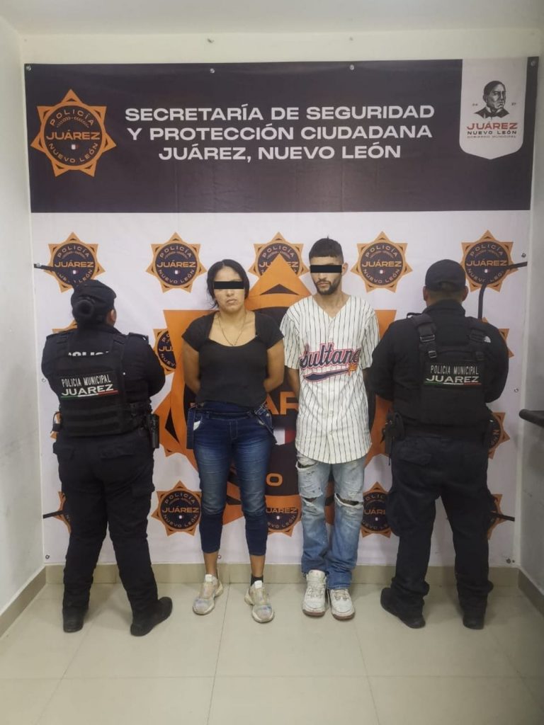 En una segunda intervención, en la colonia Lagos de Zirándaro, policías de Juárez detuvieron a Ramiro “N”, de 24 años, y a Evelyn “N”, de 31.