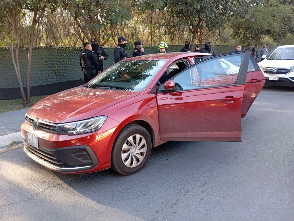 Durante su recorrido, observaron que en la calle Acueducto Villa de Santiago circulaba un vehículo Volkswagen Virtus, el cual lo abordaban tres personas.