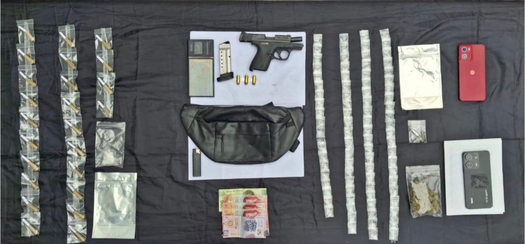 Los jóvenes se identificaron como Sebastián “N” y Dariella “N”, a quienes les decomisaron: un arma corta abastecida, 85 dosis de una sustancia sólida parecida al cristal, una bolsa con una sustancia similar a la cocaína en piedra, 24 envoltorios y una bolsa con hierba verde y seca con las características de la marihuana.