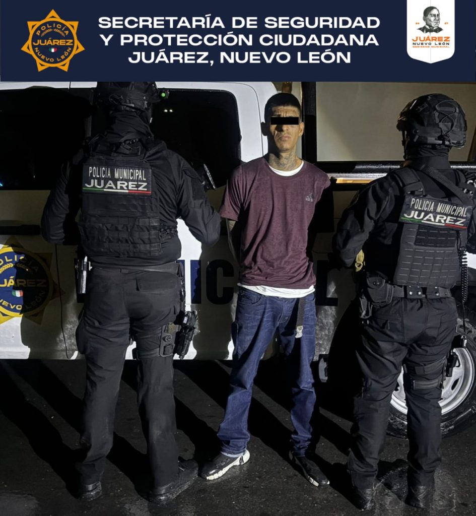 JUÁREZ, N.L. – Durante un recorrido de prevención y vigilancia dentro del operativo Calles en Orden, elementos de la Secretaría de Seguridad y Protección Ciudadana de Juárez detuvieron a un hombre que portaba droga y un arma de fuego en la colonia Valle Condesa.