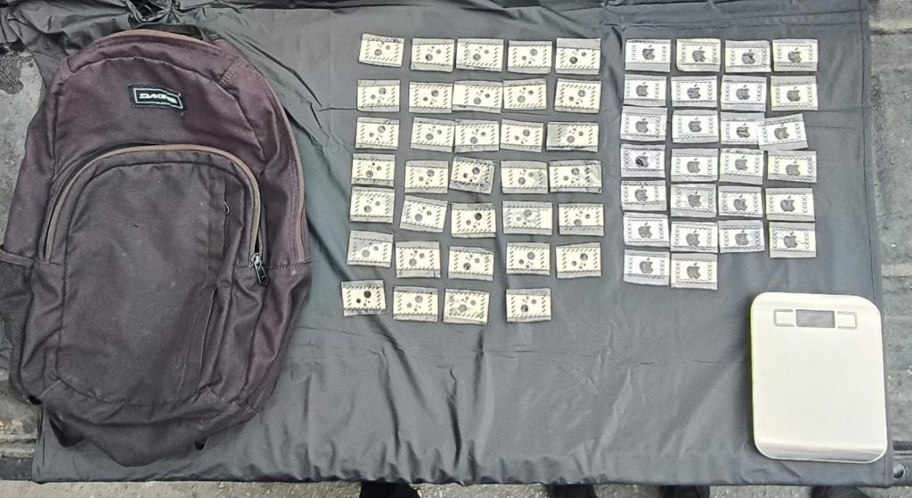 El sujeto se identificó ante la autoridad como Aaron “N”, de 26 años de edad y se le solicitó autorización para realizar una revisión precautoria a sus pertenencias, en las que encontraron: 60 dosis de un polvo blanco parecido a la cocaína, una báscula digital y dinero en efectivo.