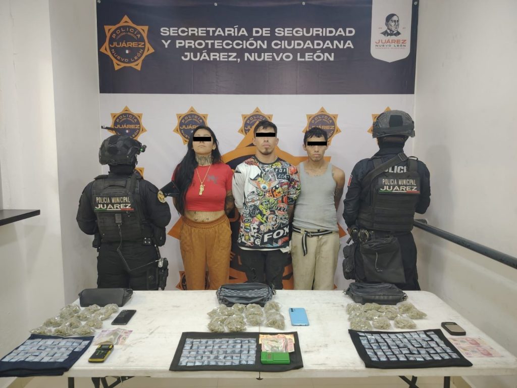 JUÁREZ, N.L. Elementos de la Secretaría de Seguridad y Protección Ciudadana detuvieron a tres personas en la colonia Valle Sur durante el Operativo Calles en Orden, luego de sorprenderlos discutiendo y alterando el orden público.
