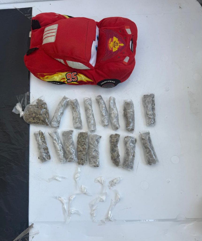 Los oficiales lo interceptaron, y al momento de realizar la inspección precautoria, descubrieron que ocultaba en el peluche varias dosis de narcóticos.