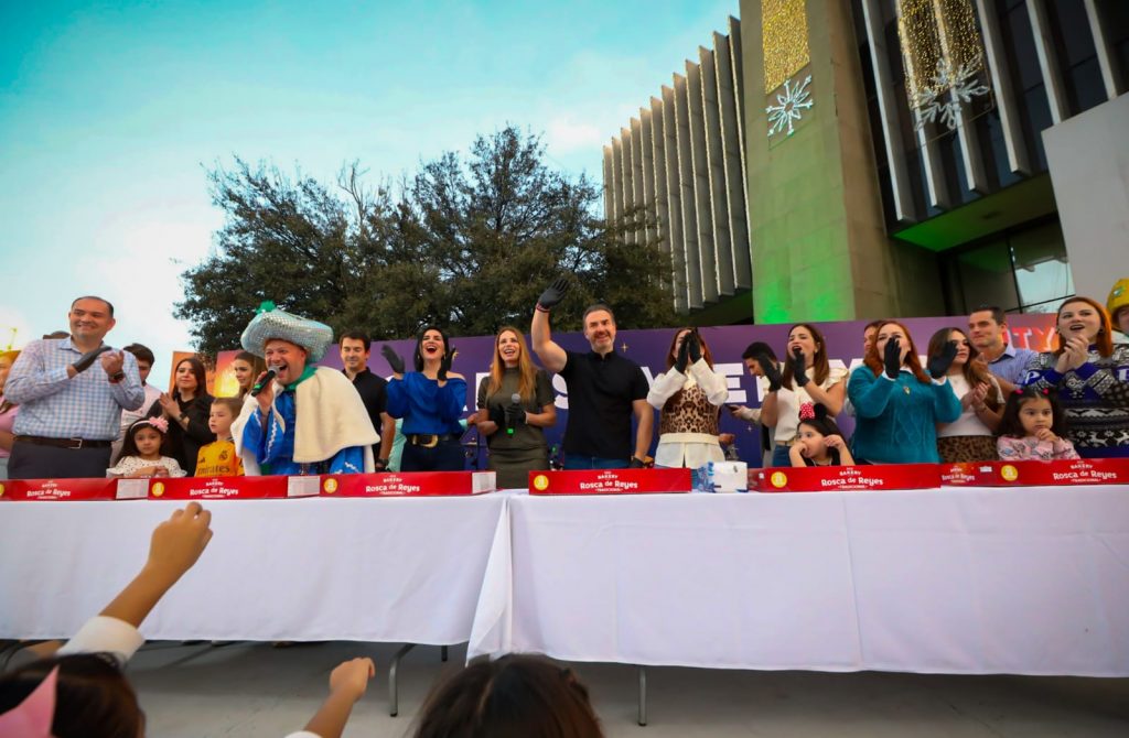 Además de los espectáculos infantiles y presentaciones musicales, miles de familias disfrutaron esta tarde la tradicional Rosca de Reyes que repartió el Gobierno de Monterrey en la planta baja del Palacio Municipal.