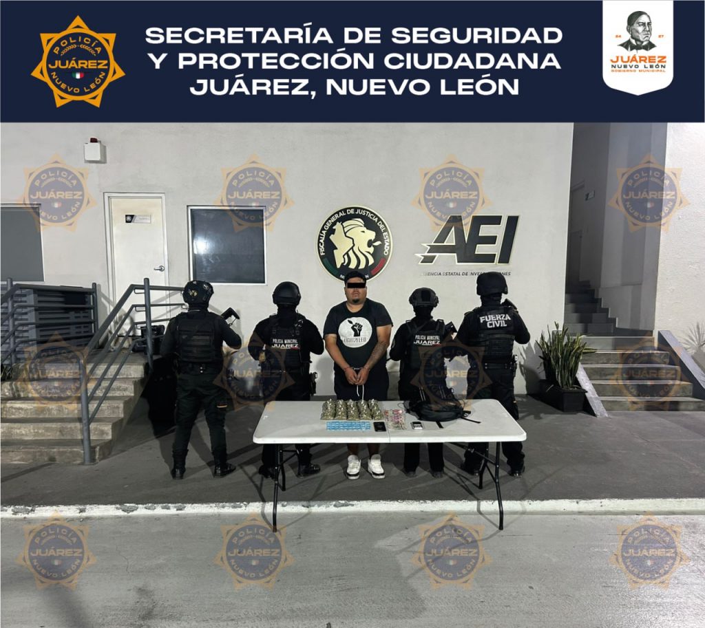 JUÁREZ, N.L.- Derivado del monitoreo de cámaras del C4, elementos de la Secretaría de Seguridad y Protección Ciudadana de Juárez detuvieron a un hombre que circulaba en una camioneta vinculada a un hecho delictivo previo, a quien además se le aseguraron diversos envoltorios con droga.