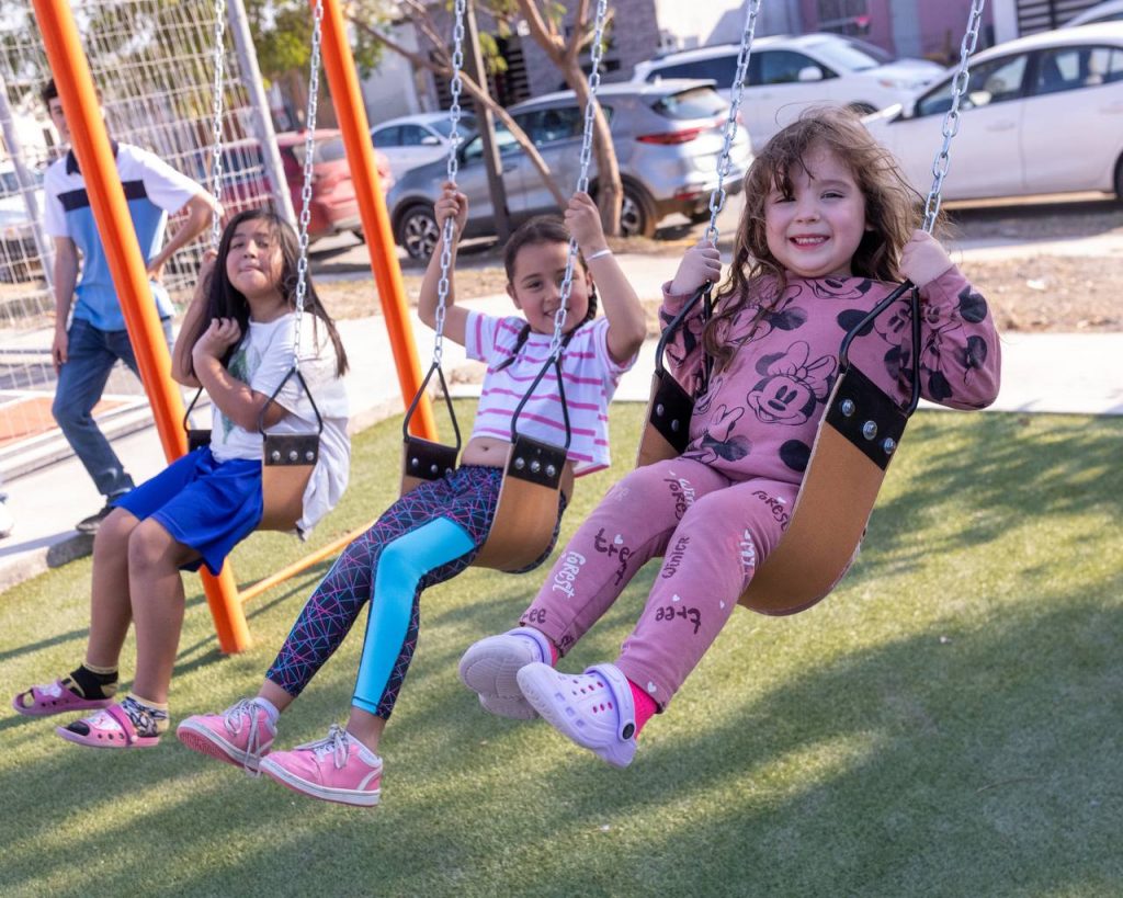 De igual forma, se llevó a cabo la instalación de un columpio en arco, un sube y baja, pasamanos y un resbaladero.Para fomentar la salud de los vecinos de la colonia Vistas del Río, se instalaron 4 aparatos de ejercicio.