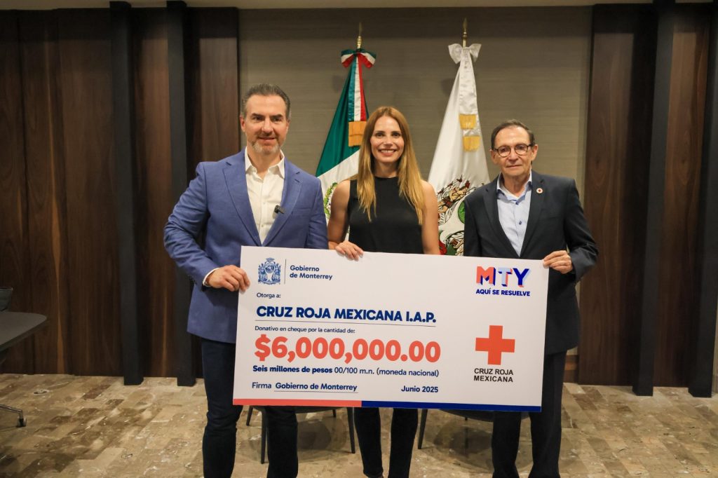 “Estamos haciendo entrega de seis millones de pesos correspondiente al apoyo que da el municipio de Monterrey a la Cruz Roja y es de 2024, todavía falta el de 2025, más aparte la colecta”.