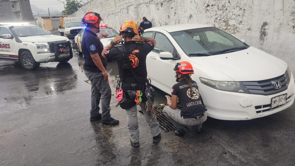 De acuerdo con el reporte de Protección Civil de Nuevo León, al llegar al lugar se localizó a la mujer atrapada debajo de la alcantarilla. Un vehículo estacionado obstruía la zona de maniobra, por lo que elementos de Protección Civil de Nuevo León, en coordinación con Protección Civil de Santa Catarina y Tránsito Municipal, procedieron a retirar el vehículo para liberar el acceso.