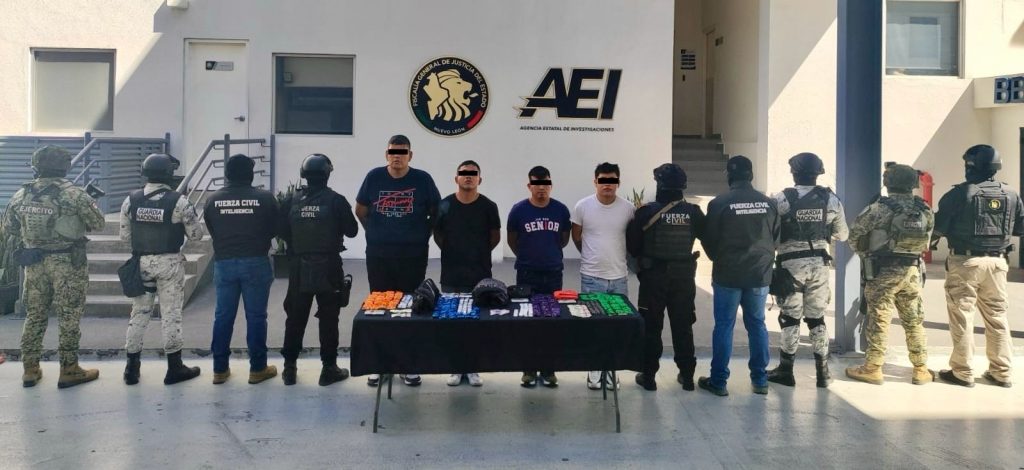 Derivado de labores de inteligencia y de la atención inmediata a un reporte ciudadano anónimo, elementos de la División de Inteligencia e Investigación de Fuerza Civil lograron la detención de cuatro masculinos presuntamente dedicados a la venta de narcóticos en la colonia Loma Real, en el municipio de Juárez.